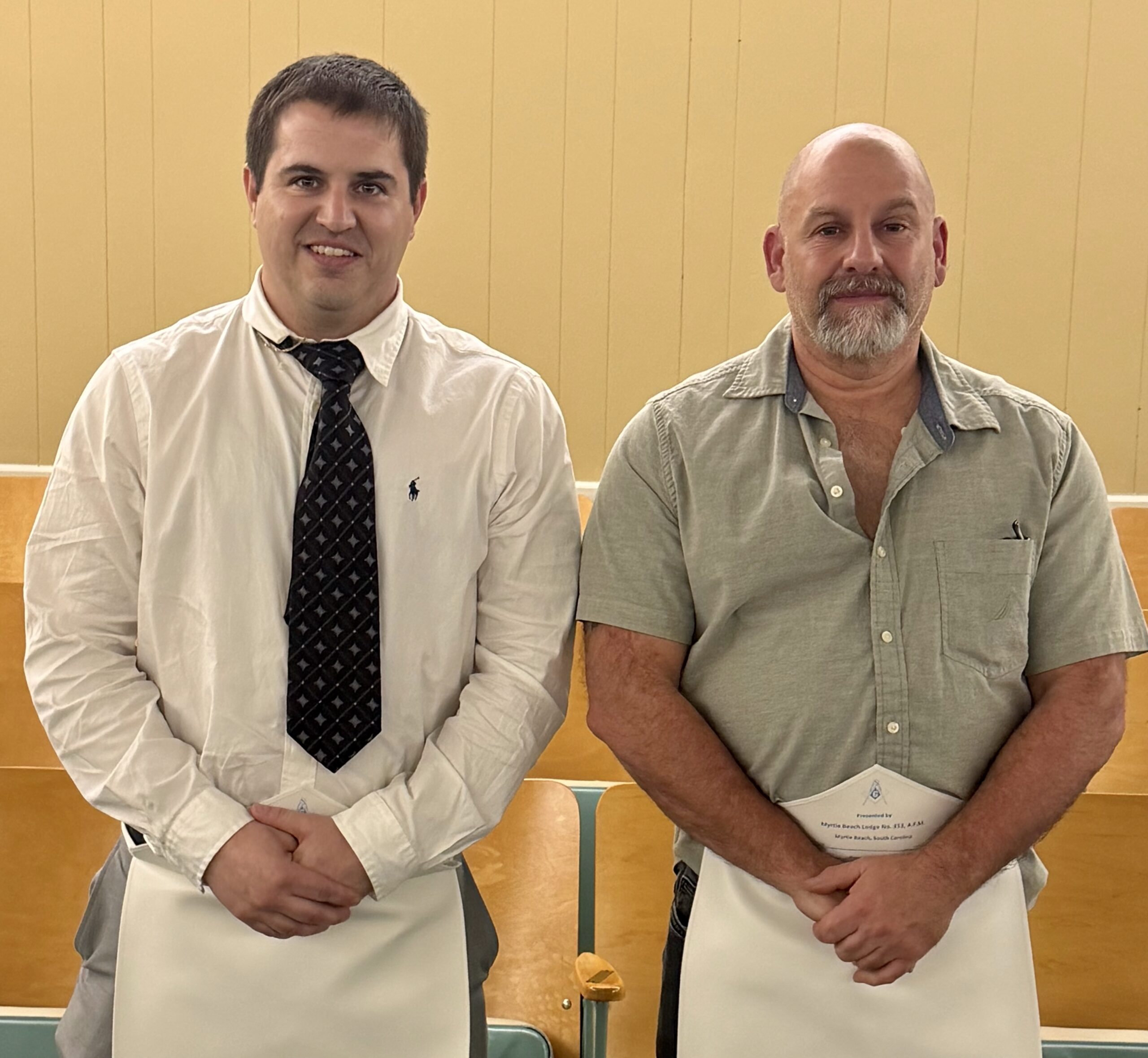 Thursday, February 26, 2026 On Thursday, February 26th Myrtle Beach 353 conferred an EA Degree on two of our Candidates. Beginning their journey to becoming Master Masons were (pictured below) Brother Michael Ross (L) and Brother Brad Linick (R). Congratulations Brothers Michael & Brad! We look forward to following your continuing journey.